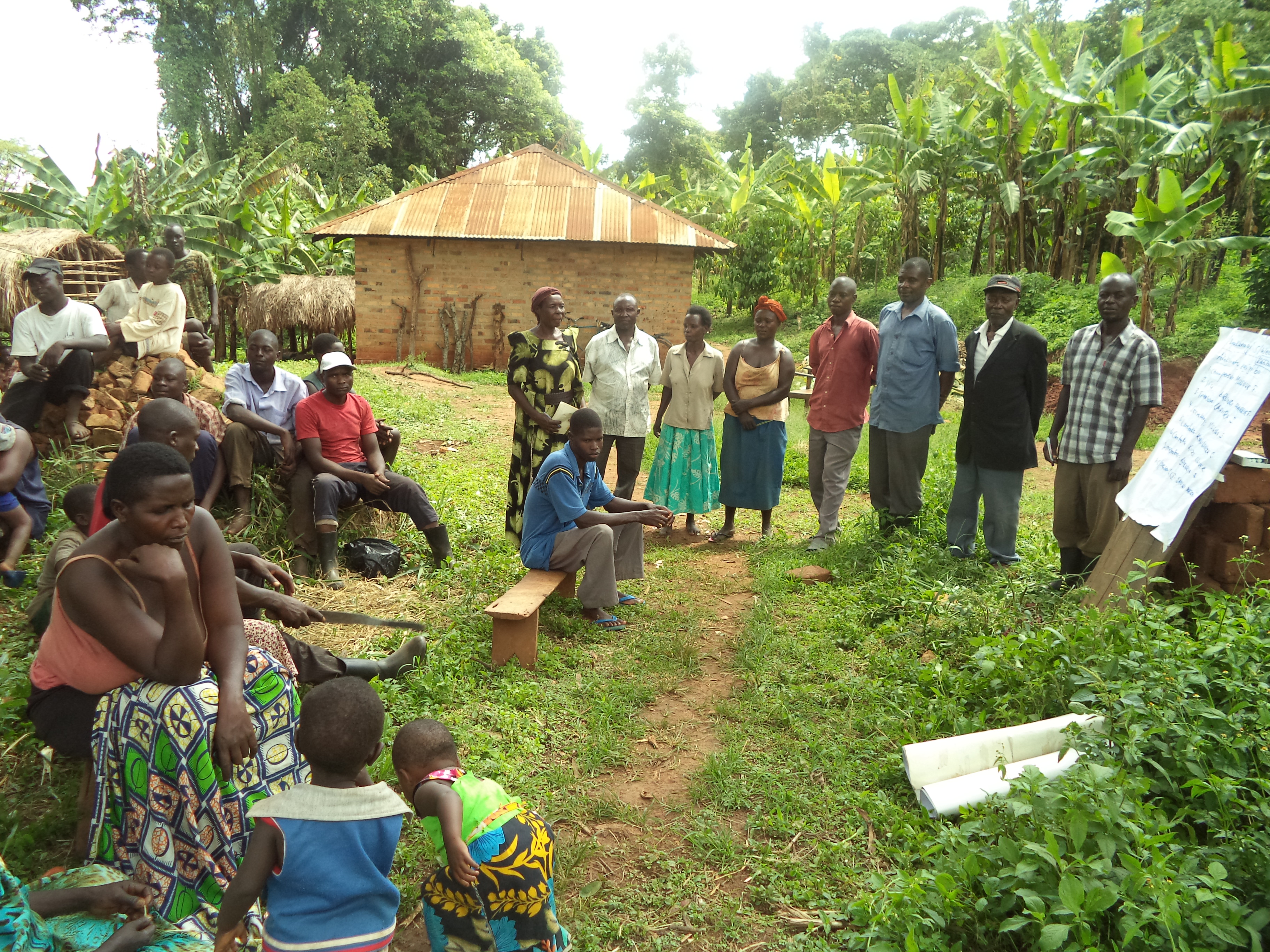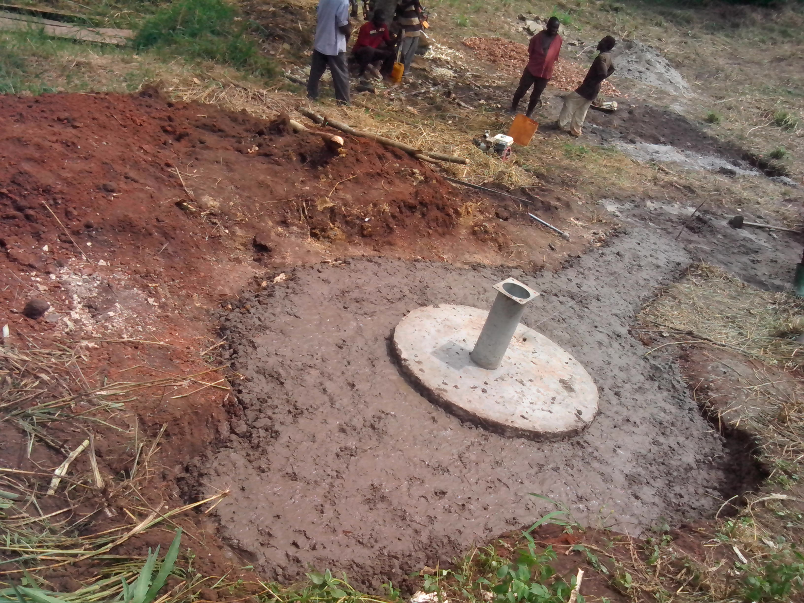 Der Brunnen ist 9 Jahre alt und funktioniert noch einwandfrei. Der Chairman dieser Gemeinde heißt Francis und möchte uns heute zusammen mit dem Water Committee ganz herzlich begrüßen. Er berichtet von mittlerweile rund 150 Haushalten (ca. 900 Menschen), die diesen Brunnen nutzen. Zudem ist eine Grundschule in der Nähe, die ebenfalls ihr Wasser hier holt. Sie haben den Brunnen jetzt aus eigener Kraft schon ein paar Mal selber repariert und auch die Instandhaltung ist ihnen wichtig. Die Caretakerin Oliva Kisa, der Secretary Peter Wasa und der Vice-Chairman Damian Kato vom Wasserkomittee bestätigen dies und bedanken sich ebenfalls für die tolle Hilfe, die wir mit diesem Bau geleistet haben.