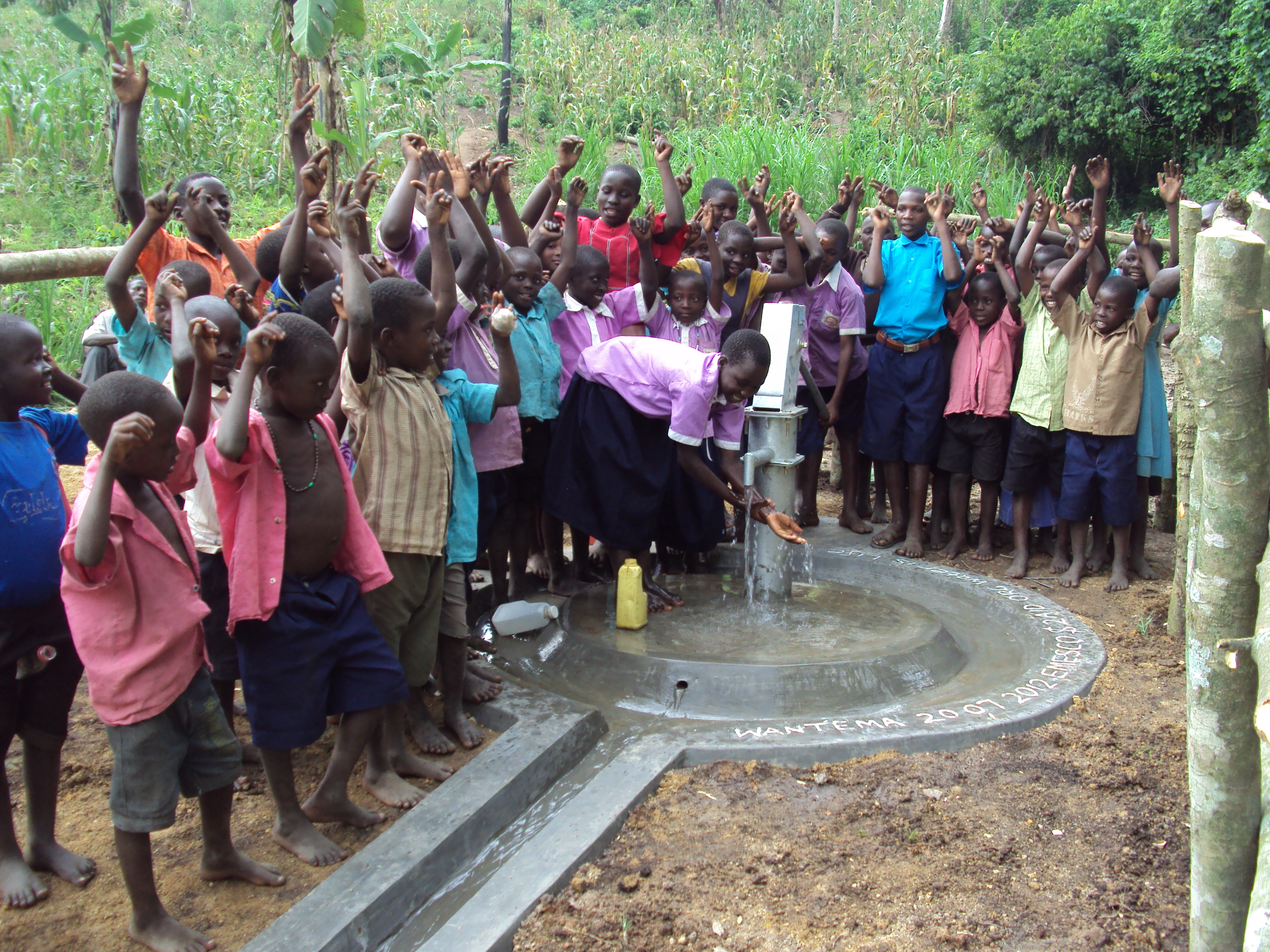 Es ist geschafft! Dank eurer Unterstützung konnten wir am 20. Juli 2012 unser 35. Trinkwasserprojekt in Uganda fertigstellen! Die ganze Gemeinde hat nun Zugang zu sauberem und sicherem Wasser, weniger Menschen werden an wasserbedingten Krankheiten leiden und können mehr Zeit der Landwirtschaft und Bildung widmen. 12,3 Meter tief musste gegraben werden, um an Wasser zu gelangen und 24 Betonringe wurden für den Brunnen benötigt (zum Vergleich: bei einem normalen Flachbrunnen sind es 6-8).