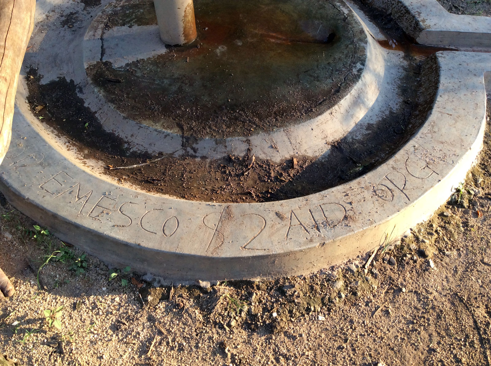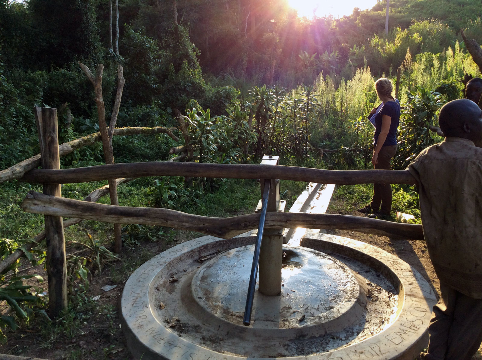 Umzingelt von tausenden Schmetterlingen befindet sich der Brunnen eingebettet in einer wunderschönen Landschaft. Den Brunnen gibt es schon seit 12 Jahren und er läuft immer noch. Man kann die Inschrift noch klar erkennen: Water is life.